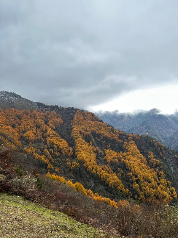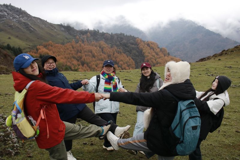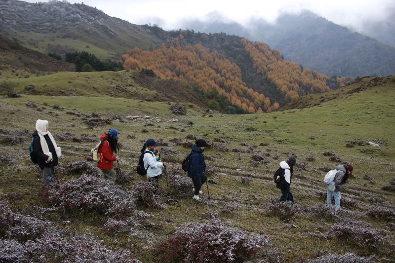 早上集合点准时出发,车上领队讲解行程安排及注意事项,发放小奖品,一路欢歌笑语,预计10:40到达下车点,乘坐当地中转车前往徒步起点(中转费30元/人自理,车上另收),简单活动身体后,跟随领队开始徒步,一路拾阶而上,穿梭在秋的油画里,欣赏色彩的丰富,远看云雾缭绕;中午在坐在金黄的高山草甸上,就着淡淡的牛屎清香,享用自带的豪华路餐,在蓝天下、白云里继续放飞自己,拍摄美照,下午适时返回乘坐中转车下山,预计下午16:30左右集合返程,大家相互分享照片,结束愉快的一天。