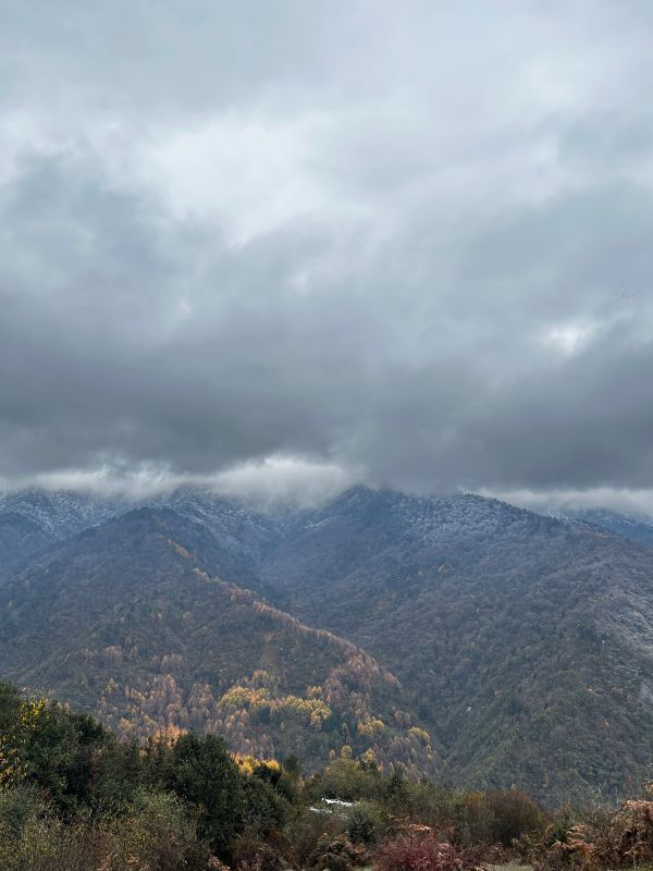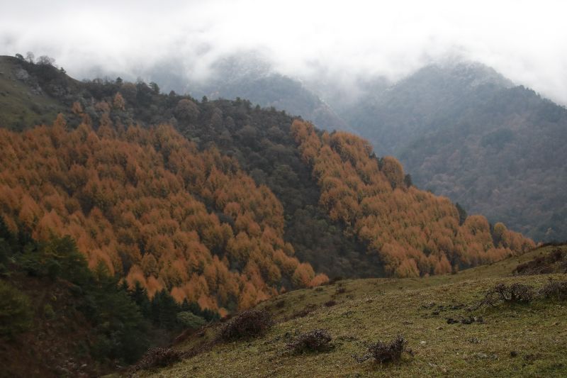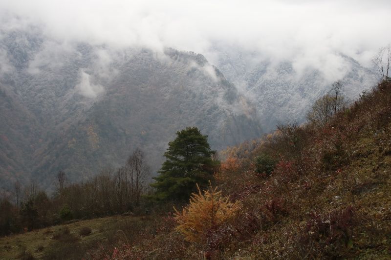 秋季,这里也是一处观彩林的好地方,云雾缭绕,远山时隐时现,山间间插彩林,一种色彩泼染的感觉。在城市生活久了,这样的地方总能使人感到舒适。