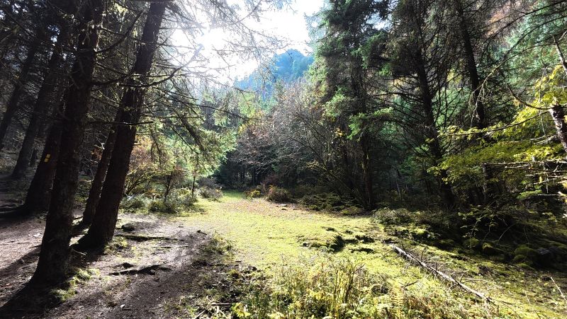 厄尔娜沟位于甲尔猛措风景区内,是藏在雪山峡谷里的绝美秘境,有着原始森林一般的宁静与清凉,神秘与美好。
