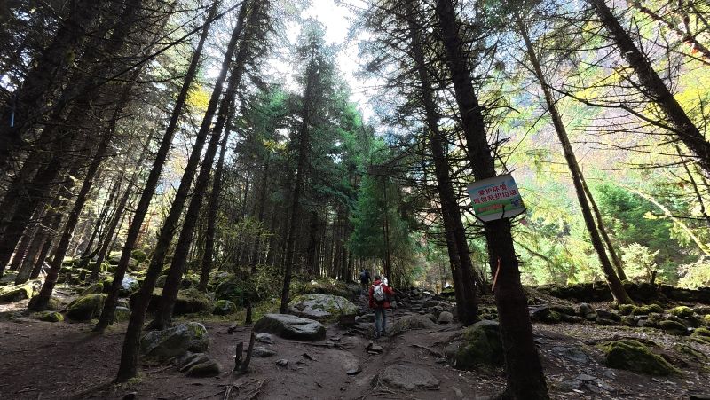 早上集合点准时出发,沿蓉昌高速、317国道转薛孟路,车上领队讲解行程安排及注意事项,发放小奖品,一路欢歌笑语,预计11:00左右到达下车点,随后换乘当地中转车前往徒步起点,下车领队组织拉伸活动,拍照大合照,随后跟随领队开始徒步,中途经过甲尔猛措营地,这里可以吃美味的铁板烧(铁板烧48元/人,自愿自理)也可以自带路餐;午餐过后,领队带领大家继续往原始森林深处前行,穿过原始森林,越过潺潺小溪,最后到达我们的目的地厄尔娜瀑布,瀑布这个清凉无比,相当漂亮,打卡拍照。预计下午14:30左右开始原返,返回到徒步起点,乘坐中转车返回大巴车处,集合回程。