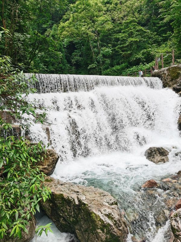 本身要去回龙沟结果人少没成团 被迫选择了这个 倒也不是不好 主要是感觉更适合夏天 先说我比较在意的点 一不需要带路餐 景区门口有豆花饭面条啥的进门之前先来一碗下山在吃完全来得及 一路山上也有狼牙土豆这种补给 二很轻松的一条路小朋友都觉得太简单 我们提前就下山导游带着去了斜源小镇 买点菜回来 怎么说呢入门路线 可以走 景区干净水不错