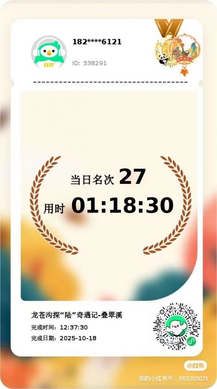 龙苍沟的风景很美,领队很负责,四个人都领到了奖牌,奖牌也好好看,下次还来参加!!!