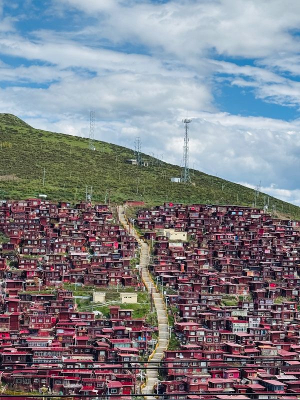 色达,是一直想来的地方,那里有我心心念念的红房子,但又有点愄惧它4000多的海拨,好在去做一件顺从自己心意的事总不会太难的。11月30日的色达,早上气温零下19度。领队半夜起了两次检查汽车担心油被冻住,我也做了必要的准备,从头到脚把自己包裹严实,穿上了最厚的棉裤。即使这样,清晨身处户外,下身仍感觉如同在冰窖里,不敢久呆。赶在洛若镇班车停开的最后一天去了色达,红房子没太多超乎想像之处,倒是7点早起赶路,看见黑暗中三三两两包裹严实,背着反光条书包的孩子们走路上学,内心甚是震撼与感动。天狼领队人很好,健谈,会拍照,下次还跟他。