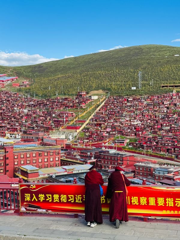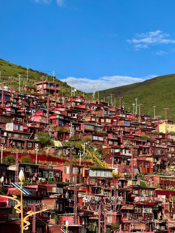 心心念念的红房子---五明佛学院,十四小时的车程,5-13度的气温,四千多米的海拔,途中还遇上了暴雨,顶着头部胀痛、气喘吁吁的各种高反症状到达此地,一个人待了一天两晚就吸了六罐氧气,太不容易啦…….. 不过领队和队友的拍照技术真不错,大家互帮互助,都很热心友善。
