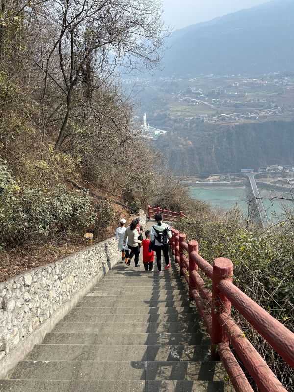 石梯虽多,但并不特别陡,登到高处,一览峨边县城全貌,令人心旷神怡!领队也很负责!不错的一次登高体验!