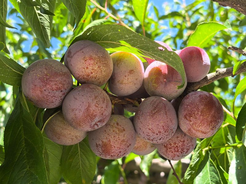 有成熟后掉落地面的李子,也有挂满枝头、果实饱满的李子树,展现出李子丰收的景象。