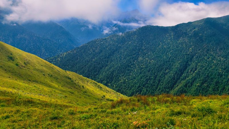 带孩子一起徒步巴朗山,满山的绿色,艳阳高照,空气好,感受大自然的美妙