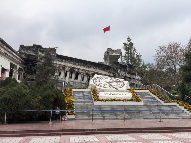 领队十分负责,车上讲解路线,注意事项,时间安排,这条路线前半段上坡,后半段下坡,难度较低。唯一难走的路反而是下坡有一段机耕道碎石子,我带上了护膝。到达了映秀镇比较早,吃上了火锅,还去参观了漩口中学地震遗址。回程也很快,5点10分到达西南财大站。