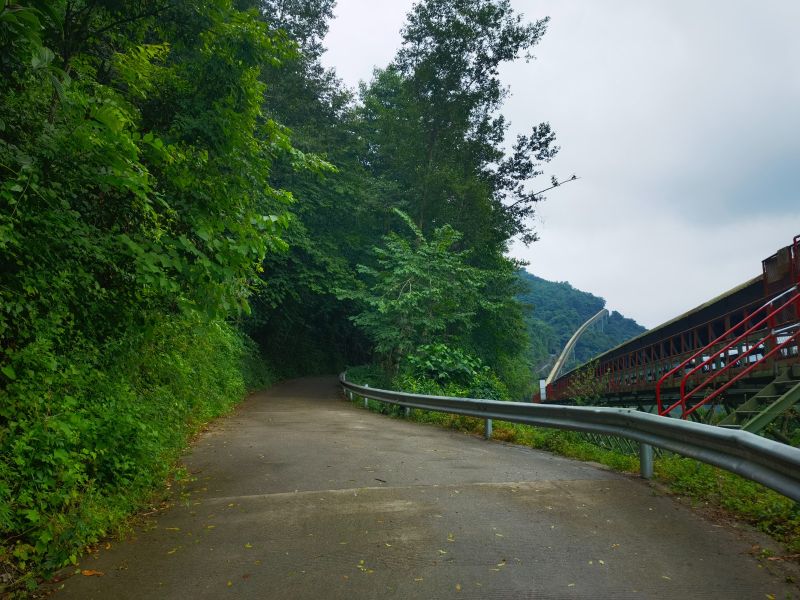 一路可见这条彭州石化的输送带从大山中穿过,犹如一条长龙在山间穿梭!