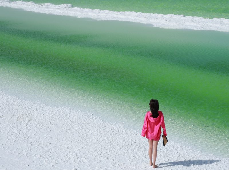 2、由于盐层比较粗糙,赤脚走路时会有些痛,而且湖内深处淤泥较深,建议自备一双拖鞋;