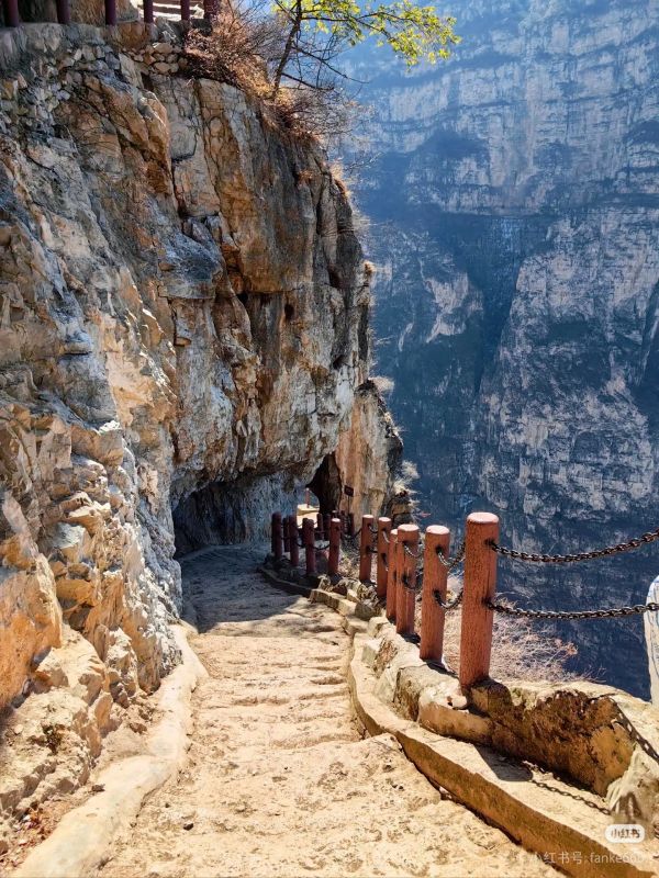 越往上走,道路越来越艰险,很多徒友在此会陷入“继续前行或止步退回”的两难境地,毕竟一边万丈深渊一边陡峭的骡马道都是对人体生理和心理的极大考验。