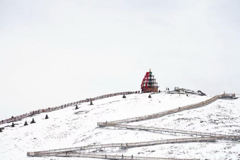 与藏式民居、远山雪景相融