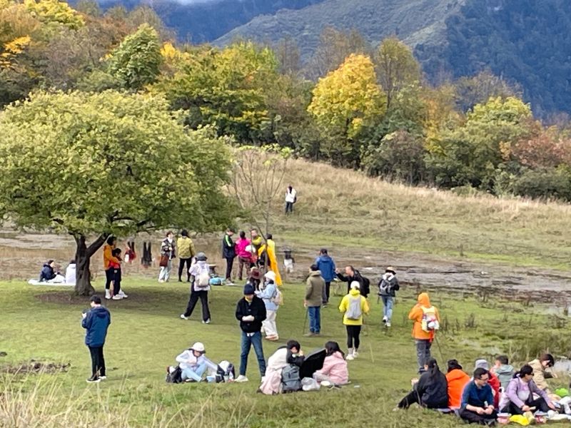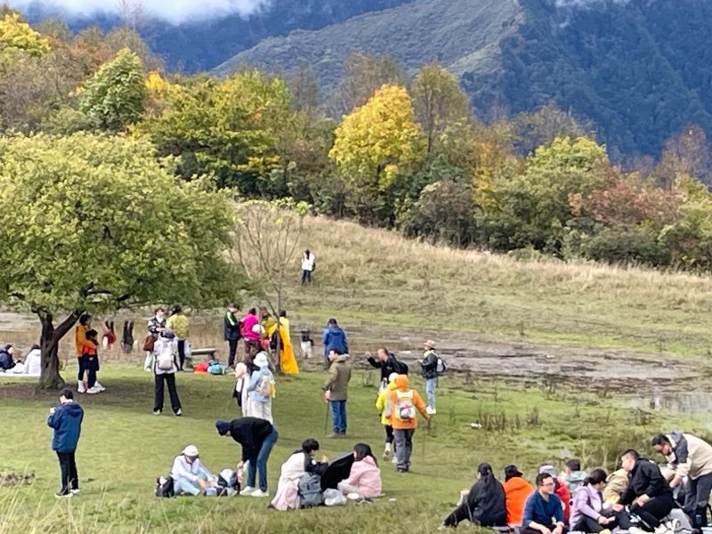 叶子还没有太黄,可能隔一周更美,今天运气好天气不错,出太阳了。小苏领队很棒