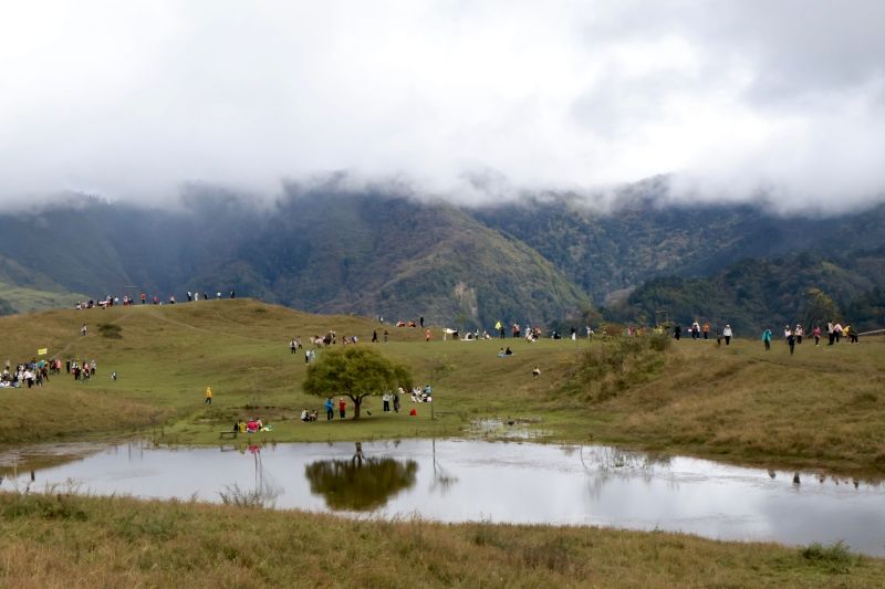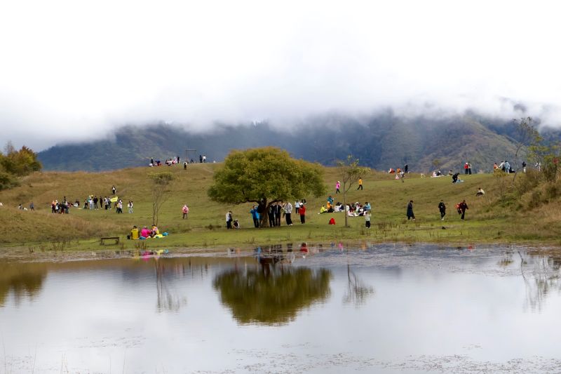 按照约定时间,在集合点集合签到,我们会准时出发,领队在车上会组织大家相互认识,一路欢声笑语。预计10:40到达下车点,乘坐中转车前往徒步起点(中转费往返30元/人,门票及清洁管理费14元/人),开始徒步,一路拾阶而上,欣赏草原景色的丰富,远看云雾缭绕。中午在山顶青草满地的高原海子边,就着淡淡的牛屎清香,享用自带豪华路餐,在蓝天下、白云里继续放飞自己,拍摄美照,玩够了原路返回,预计17:00上车回程。