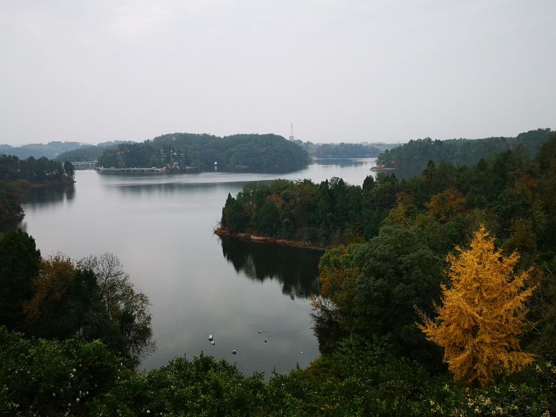 仁寿黑龙滩,位于仁寿县城10公里左右的龙泉山南麓,被誉为"川西第一海",85座群岛星罗棋布,好似水上盆景。湖面开阔,碧波万顷,水天一色,回环掩映,如梦如幻,已被列为省级风景名胜区。