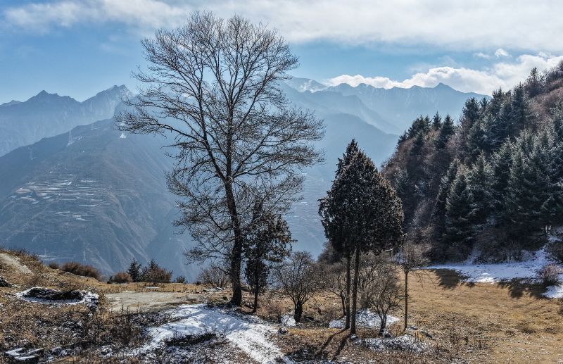 沿途可欣赏峡谷对面壮丽的雪山,徒步3.5公里便可到达美丽的草甸,背靠雪山,看骏马奔腾,欣赏古老的羌寨