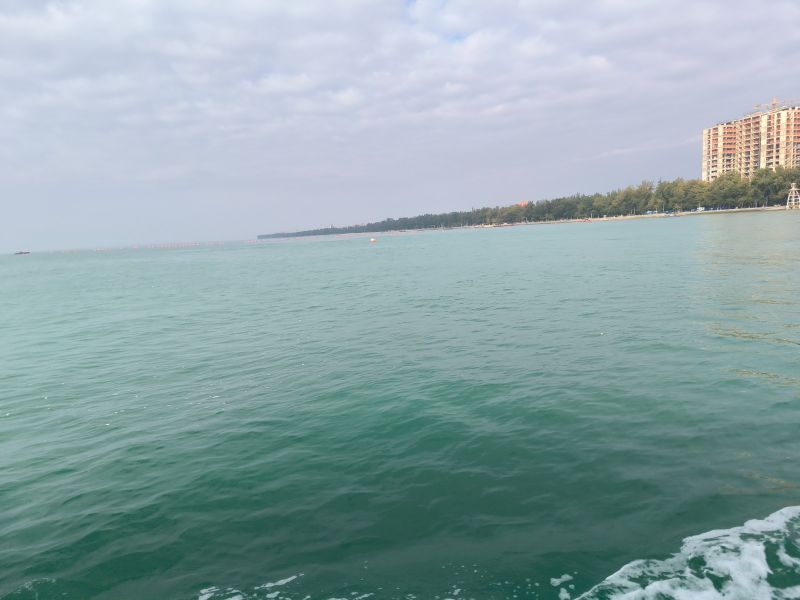 金滩之沙金黄、细腻而柔软,纯天然的沙滩延绵数十里,站在金滩上,迎着海风,隔着蔚蓝色的海水,可以遥望西南方向水天一色的越南海景。