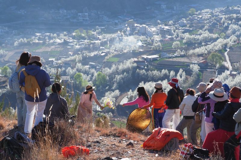 早上,早起抢占有利拍摄点,在神仙包上拍金川梨花的晨雾,也是这里特有的风景,或者租车到附近的观景台去拍最美日出,10点准时集合返程;
