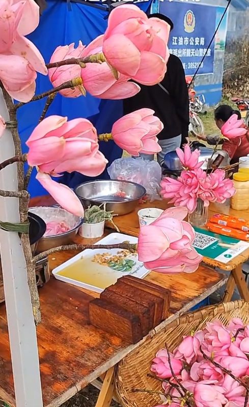 在吴家后山赏辛夷花是一乐事,品尝辛夷花也是一大特色哦!油炸的、凉拌的,放一片在嘴里,嫩嫩的、香香的、脆脆的,那感觉,巴适的很。