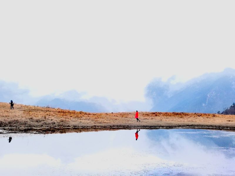 按照约定时间,在集合点集合签到,我们会准时出发,领队在车上会组织大家相互认识,一路欢声笑语。预计10:40到达下车点,乘坐中转车前往徒步起点(中转费往返30元/人,门票及清洁管理费14元/人),开始徒步,一路拾阶而上,欣赏初冬甘海子的美,远看云雾缭绕。中午在山顶高原海子边,就着淡淡的牛屎清香,享用自带豪华路餐,在蓝天下、白云里继续放飞自己,拍摄美照,玩够了原路返回,预计17:00上车回程。