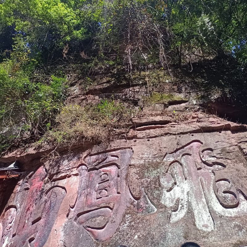 清风拂过,在空气中卷起涟漪,穿行于一草一木,石径蜿蜒,美得极致,似乎只有最初的童真和心灵在行走。经过将近一个小时的跋涉后,药师岩石窟终于出现在了眼前。首先映入眼帘的是在悬崖上镌刻的“飞凤山”三个浑厚的大字,药师岩的石刻塑像群,在半山腰的峭壁之上,密密麻麻的摩崖雕像占据了整个山壁,身临其中,一种威严敬畏的感觉油然而生。