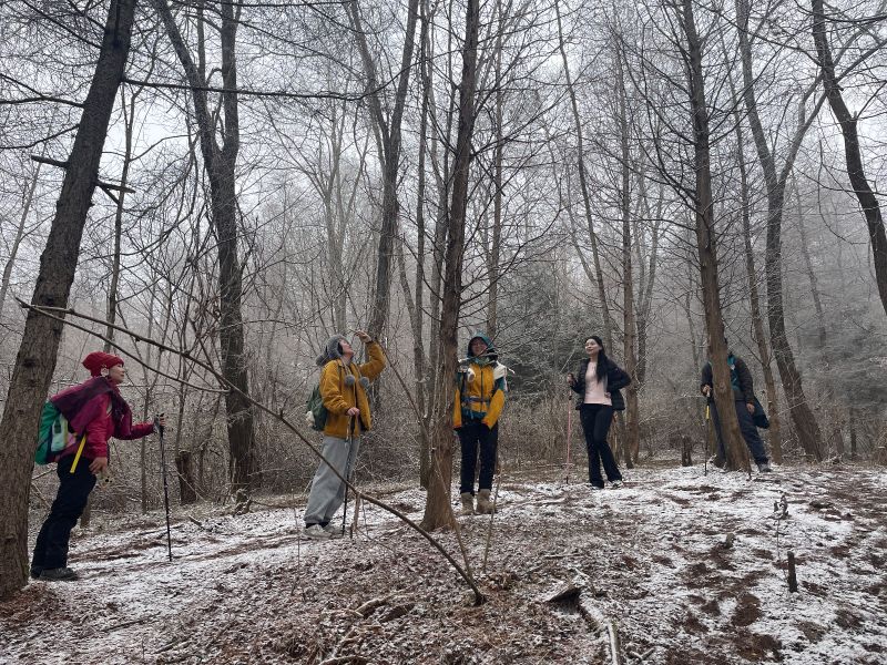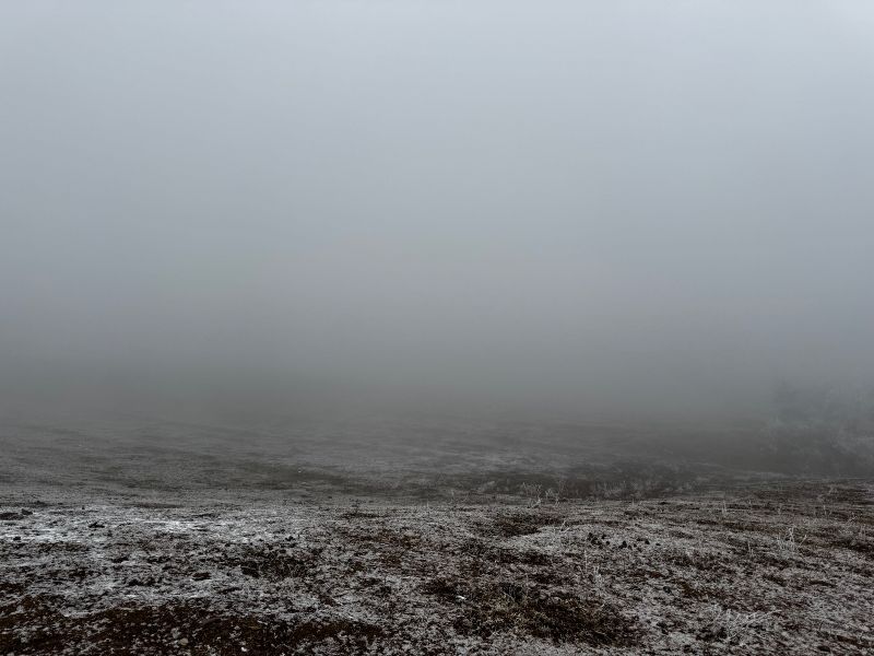 天气虽然不好,但是热情很高。领队实在是太好了,尽量照顾到每一个队员,群里发了一句“全是大雾,看不清不知道怎么走了。”“等我,2分钟后到!”零下的温度,一会儿领队就气喘吁吁的跑过来了,热得头顶都在冒烟~