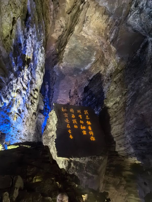 位于双河溶洞内,采用魔幻效果将"天书"印在石壁上,满满诗意,我不能告诉你,所有的秘密,因为我的秘密还在生长