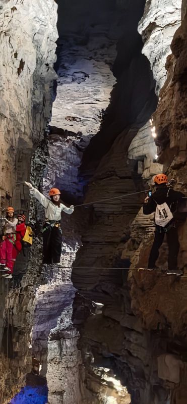 国内首创洞穴飞拉达软探险项目,仅靠头灯这一小小的光源,可见范围就几米,其他地方真的就是一片漆黑。洞穴飞拉达全长450m,一路攀升,含装备,教练,时间3小时
