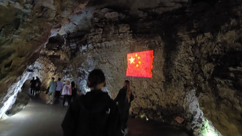 何教洞内面积5000平方米,洞顶高达30多米,常年温度15-18℃