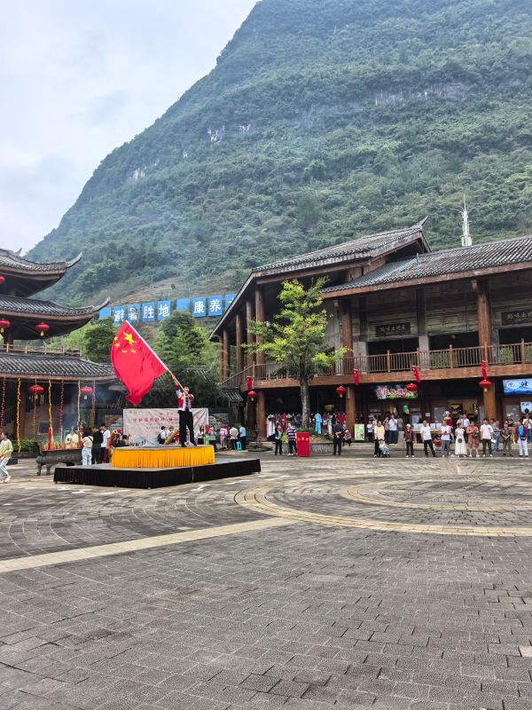 早上起床早餐后,赶在8点前往中国傩城城门口参加开城仪式、开城仪式迎客,独具特色的民族风情,开成仪式结束后前往高空之上的玻璃索桥(自费)、中国傩城高空之上的玻璃索桥你是大踏步迈过?还是举步维艰?反正我只能胆小的站在桥边看傩城美景。游玩玻璃索桥后你以为就结束了,NONO NO 还有玻璃滑道急速下滑的感觉,好像整个人要飞起来了!血压都要爆表啊!在傩城午餐后开始返回成都。
