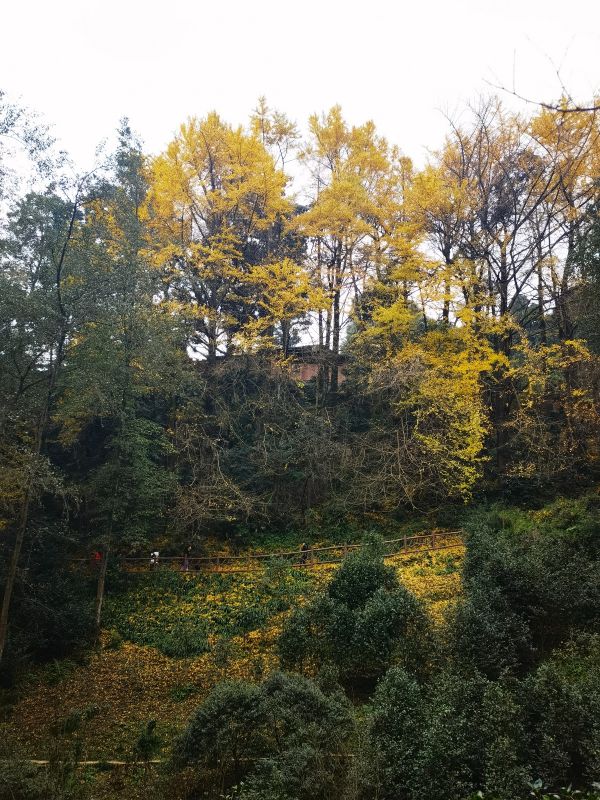 入秋,成都周边的银杏大都散落之际,葛仙山的银杏却初露头角。在经历过几番淅淅沥沥的小雨之后,葛仙山的银杏越发黄的快,满山遍野正在等待秋、冬的接替..