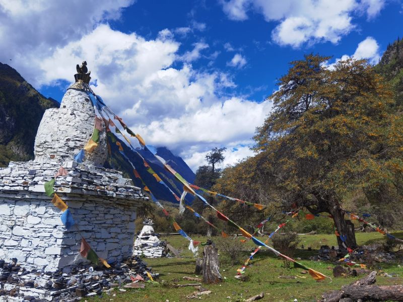 看经幡随风飘动,每一次飘动都是一次祈祷,也都是一次与圣山的对话;看碧水倒映着蓝天,水中的枯树成为最特别的景致。
