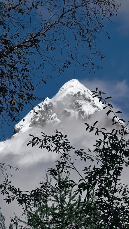 比白雪更圣洁的是高耸入云的雪山。没有比大雪后的山峦更迷人了,整个山脉峡谷,都是银装素裹。
