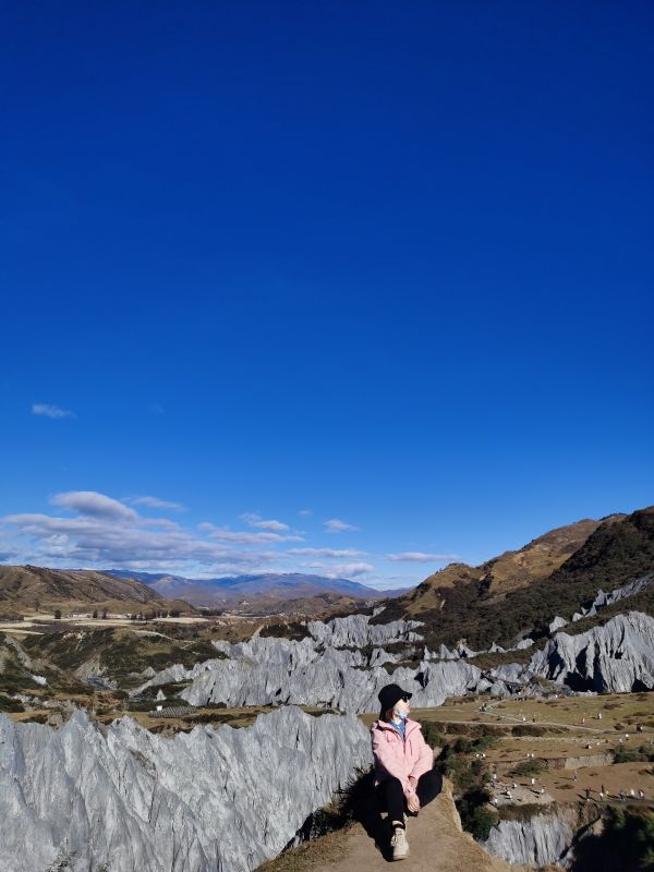沿着小径,走进石林深处,丛林和灌木都消失了,草原也隐退了,一片空阔,悄然无声,周围完全是耸立的蓝色石林,笼罩在巨大天幕下,好像到了一望无际的异域星球,穿越古今中外的时空进行星际探险,探寻宇宙的秘密;又仿佛置身于另一个美丽的异域世界,独自享受这份无边的清静、这份远古的神秘……