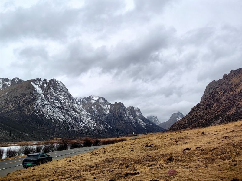 从阿坝县到莲宝叶则45公里,一路在山谷里,蜿蜒曲折,翻滚的河流在路边,陡峭的山崖在两岸。