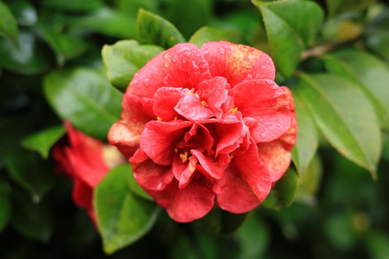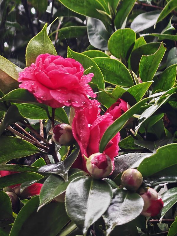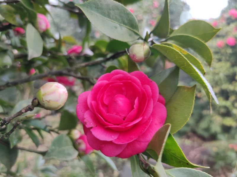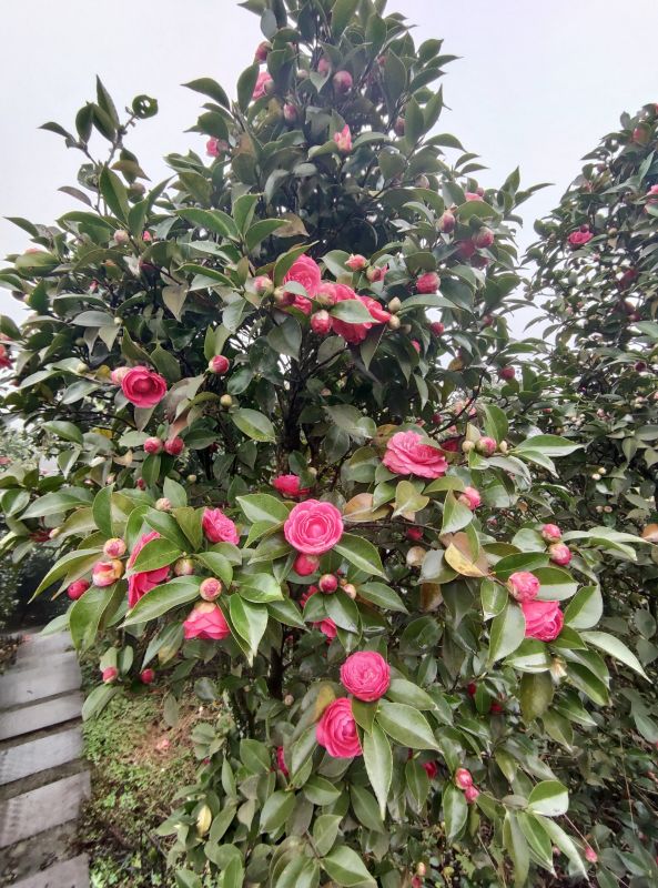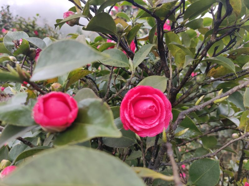 虽然下雨了但总体还是很轻松的,山茶花很漂亮