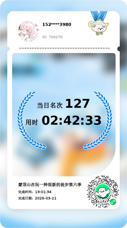 整体感觉都很好,可以选择锻炼的全徒步,也可以选择索道+观光车的轻徒步。奖牌也漂亮。领队细心负责,好评~