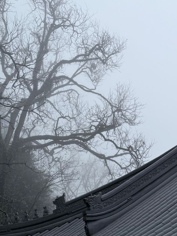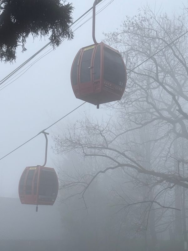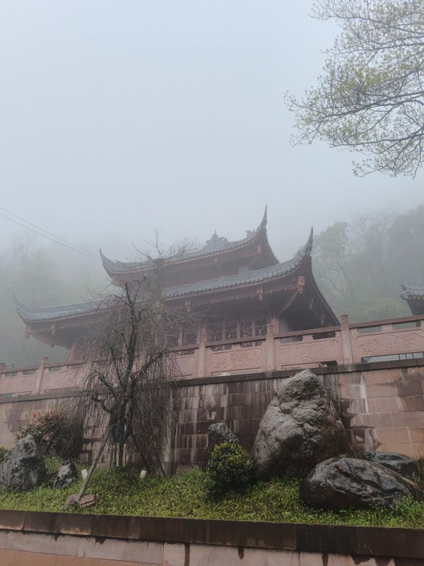 天空中有小雨,山上雾气比较重,又是别样的风景
