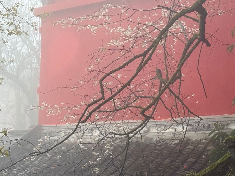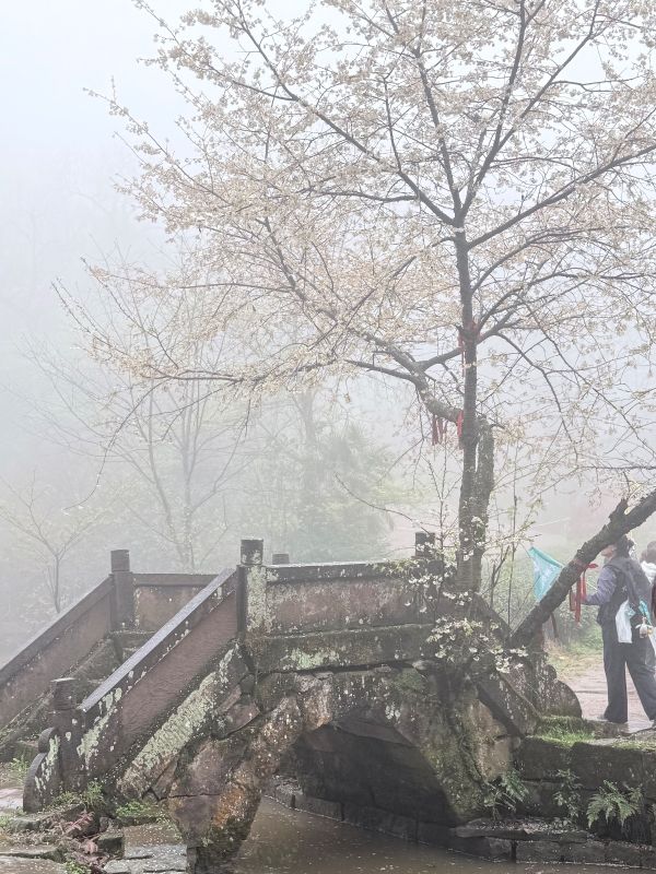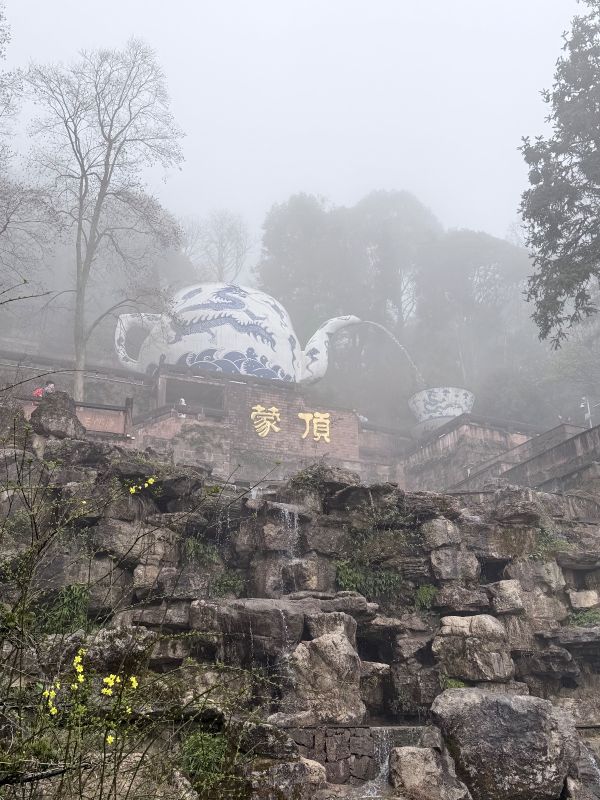 2026.03.07烟雨落蒙顶 / 三八节雅安蒙顶山免门票,山门茶香萦绕,一路烟雨青石路,仿入人间仙境。 / 三月登山,春天最早开花之一的黄灿灿迎春花,淡黄色高山野生迎客杜娟,一团团聚集在枝头的橙黄杉木雄球花,雾气蒙蒙的山林里迎春樱花,刚长出来的嫩芽卷成一个拳头形状的鳞毛蕨。密密麻麻长在老枝上小红点马桑雄花。 / 雾里看花,烟雨负氧离子入细微毛孔,深深呼吸,一路慢徒,触摸感受大自然的馈赠,满足一整个冬天的心愿。