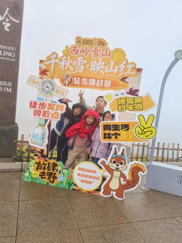 昨天走不过三岁的小侄女,今天跑不过五岁的小语桐,小朋友才精力旺盛呀!我是甘拜下风,输的心服口服。我太难了,西岭雪山的徒步,爬的我自带胭脂色,爬的我仰天长叹,爬的我进退两难,爬的我怀疑人生……才打卡两个点,330个奖牌就被别人领完了,离鸳鸯池还有1600米,才能换乘大巴车,盗个徒步群友登上山顶的雪景图充充场面吧