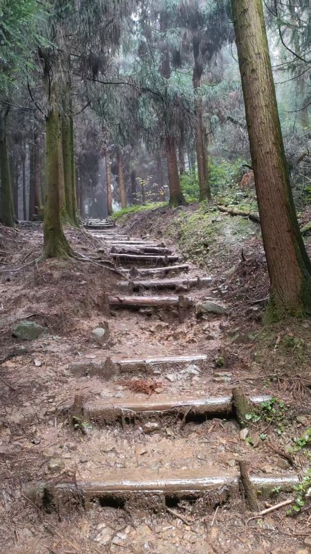雨后路滑,找树枝做拐杖,领队在徒步过程中非常贴心,一路美照,谢谢!