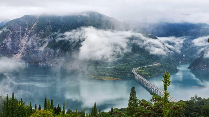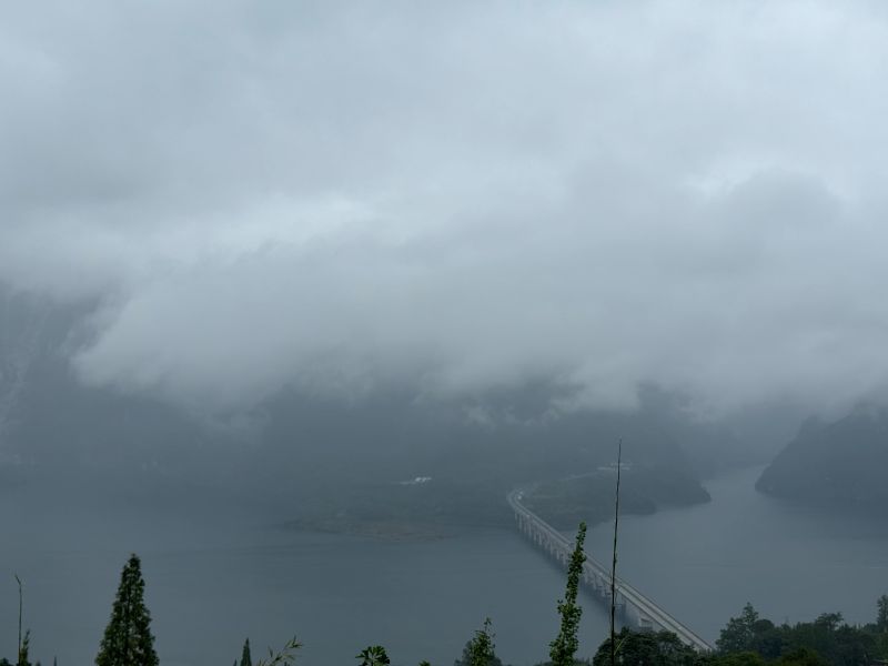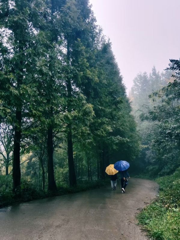 虽然在下小雨,但空气清晰,水泥路挺好走,值得推荐。