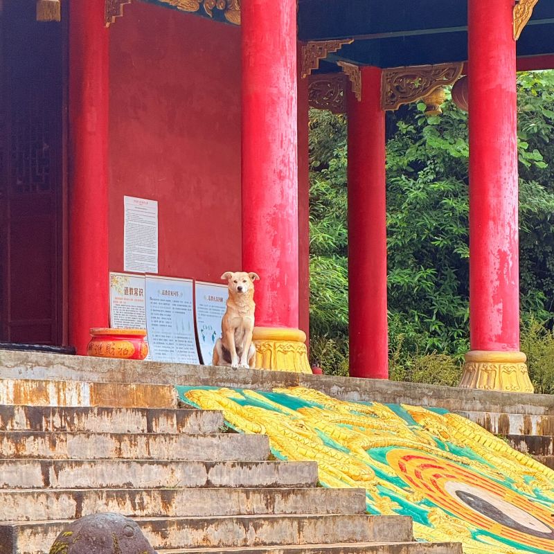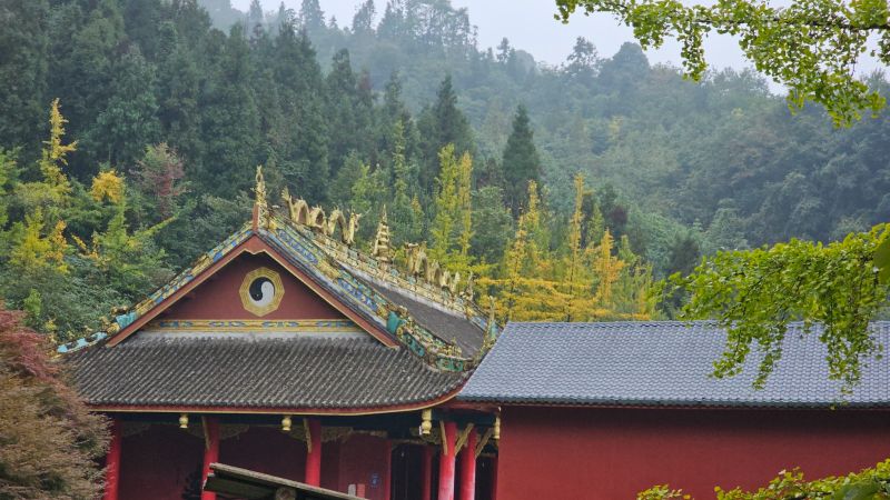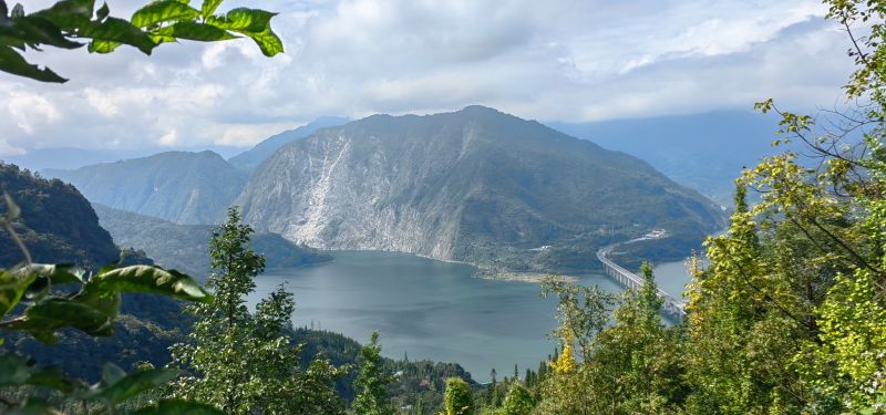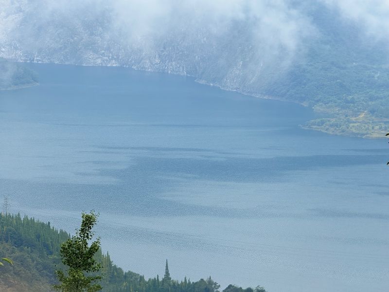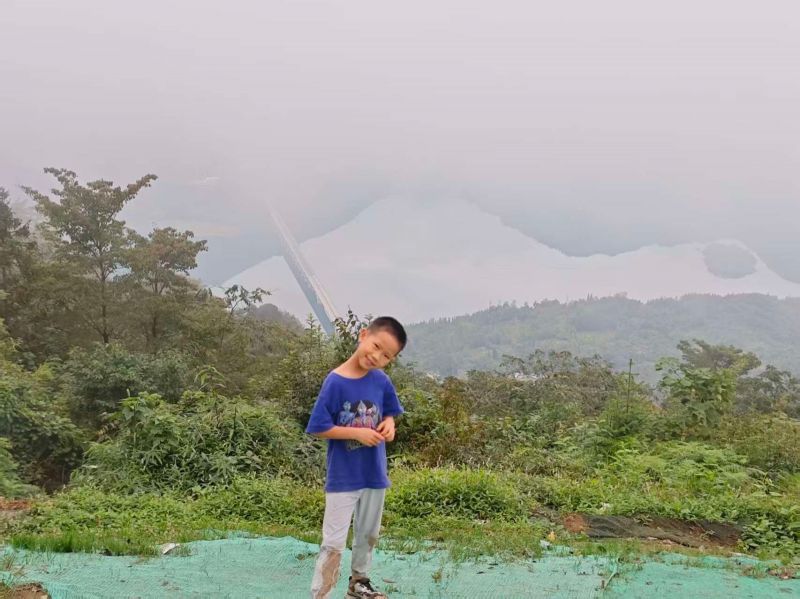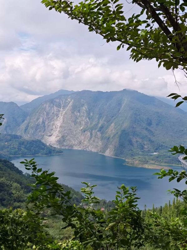 路途有一些湿滑,领队帅帅很给力,一直陪着,很仔细,很有责任的小姑娘,路上的风光太让人无趣,坚持到了山顶,看见紫坪铺全貌一舒坦很多了