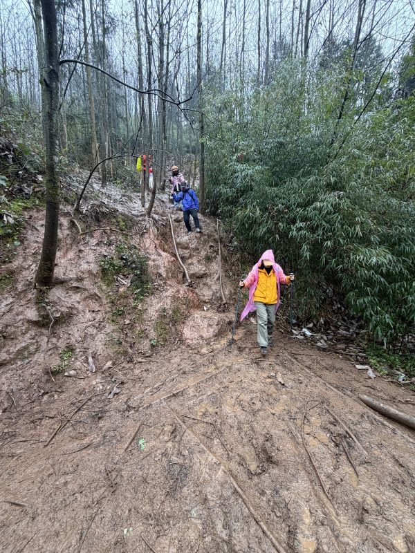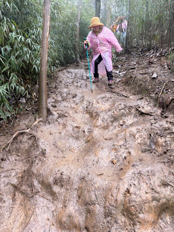 领队非常专业,非常负责任,把大家照顾得很周到。这个团队气氛很和谐,非常感谢其中的几位男士,很有绅士风度,遇到沟沟坎坎的地方,都会搀扶一下身边的姊妹。虽然今天天气不好,道路泥泞难走,但遇到这么好的领队和队友,心情愉快,下周继续参加c+,期待再次与你们相遇!