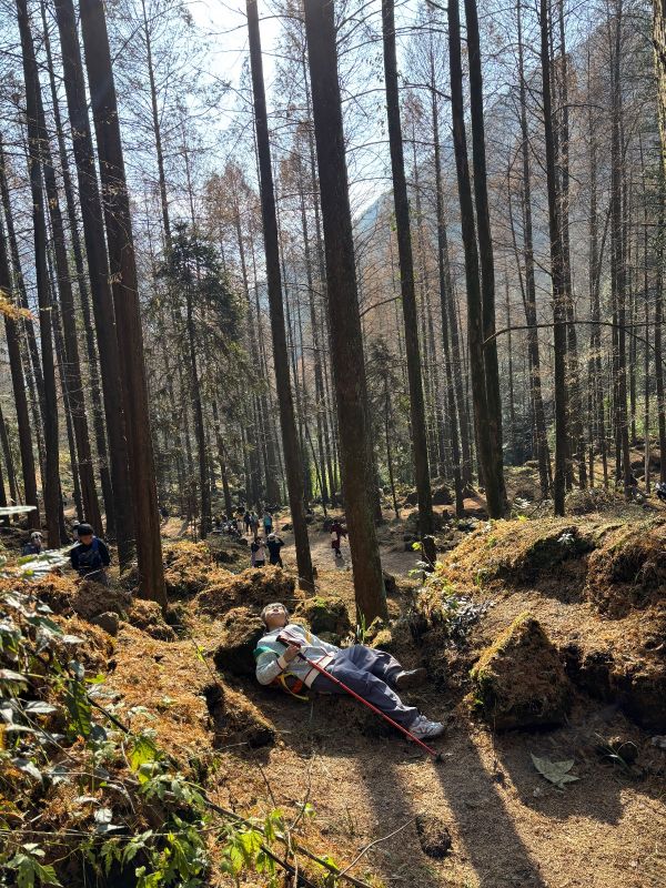 一条很轻松很原始的阳光徒步古道。启程山路陡峭略为费力,中转站房屋后面有段陡峭下坡,其他路段均较为轻松。一定记得看好天气预报,下雨千万不要去,溜得很。天气好走着就很轻松了。有一说一,土豆是我见过的LU领队里心最细的领队了,随时随地在数人。中间也不休息还跑回去接落后的所队友,反差感很足