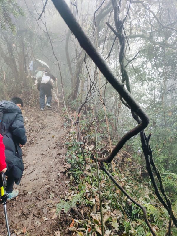 很有挑战的一次徒步,本来是C+路线,但是一直在下雨泥路就很滑,领队说可以到B的程度了,很多小伙伴都摔了但是全员都安全到了车上,想要挑战金凤山的可以出发了,领队也很负责,很不错的一次徒步