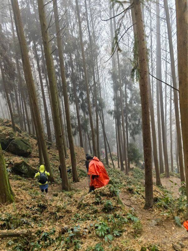 山间雾气弥漫,微微小雨,让原本c+的行程直接升级,更具有挑战性。此次徒步,除了别样的景致赏心悦目,还有脚踏稀泥,战胜湿滑的艰辛,更让人难忘。最后,感谢火星领队和小王领队,尽职尽责。
