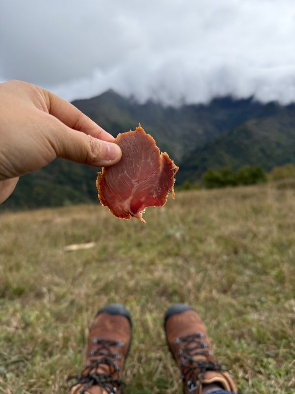 在山上看杀牛看得津津有味,上山爬得快累死了,依然买了牛肉背下来,山下又买了大萝卜,红皮大萝卜。