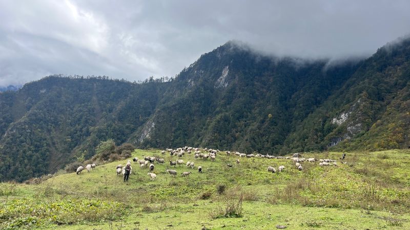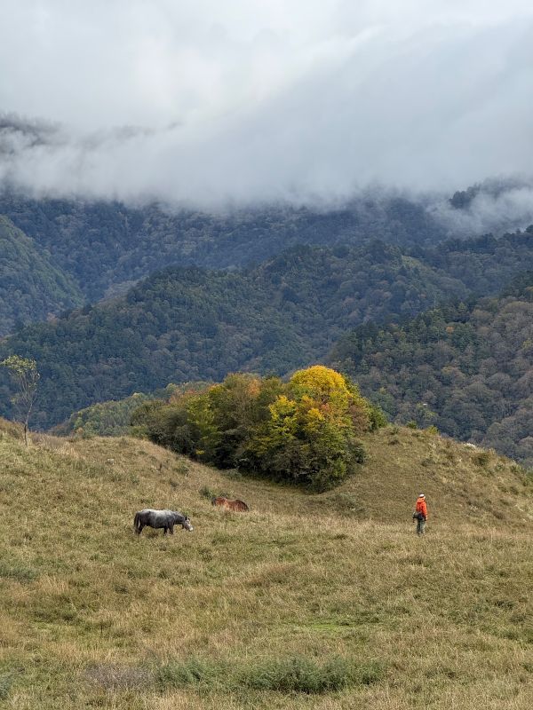 三分之一路程有点辛苦点,三分之二路程轻松。时间早了点彩林没怎么上色,但是高山草甸蓝天白云还是惬意。天气还算给力,临近中午放晴。领队和向导一前一后很负责。领队小娟心细热情,照顾大家,还给我们拍拍拍。非常快乐的一天。