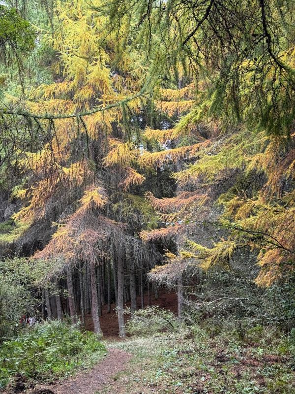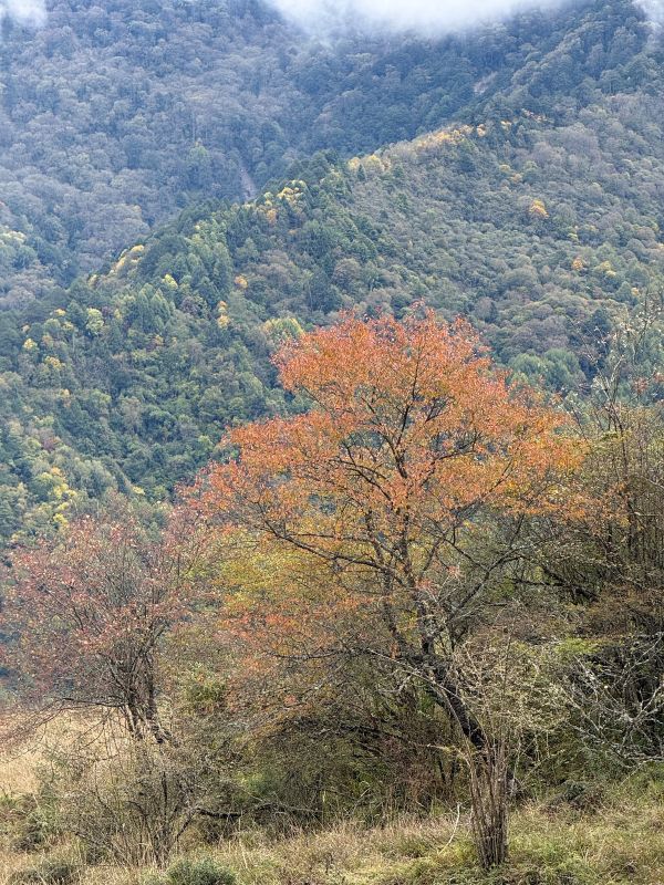 层林半染吧,离最佳赏秋季还差一两周,但是大自然任何时候去接触都是好时候。然后就是山高路滑,去的话做好心里准备,@下领队小贝,很温柔的小姐姐,下坡路上有两次差点滑倒多亏小贝领队眼疾手快拉了我一把。总得来说,还不错的体验
